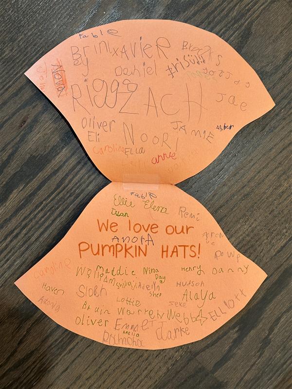 Later that day, their teacher surprised me with the sweetest handmade thank-you letter — shaped like a pumpkin, of course! 🎃 It had all the 1st and 2nd graders’ names on it, each one carefully written by the kids themselves. Seeing their little signatures melted my heart completely.